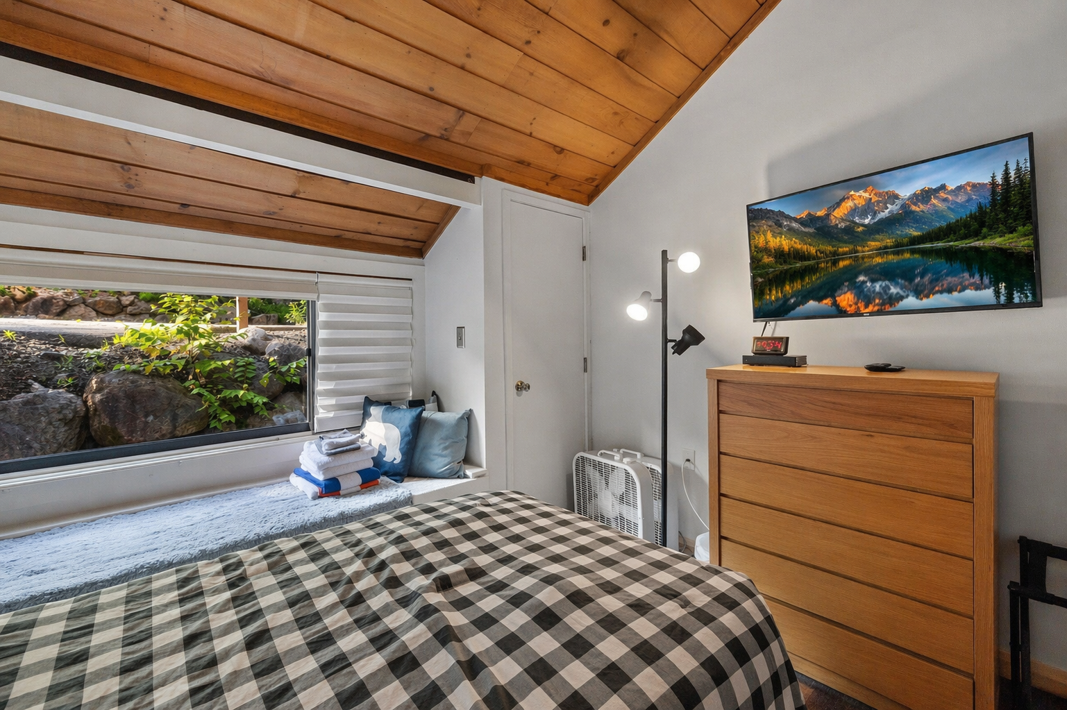 As you enter our condo you will be in a dedicated mudroom, great for skis, boots and other outdoor gear. Just inside the second door you will find the first bedroom with a queen bed and pull out twin bed as well as the first full bath. Half a level up will take you into the living room, dining area, kitchen and deck - all with amazing views of Loon's main slopes! Above that you will find the loft with a set of twin bunks and another twin for a total of 3 beds. If you head all the way back down you will find yourself in the primary bedroom with a king bed, attached full bath, and more views of Loon Mountain!