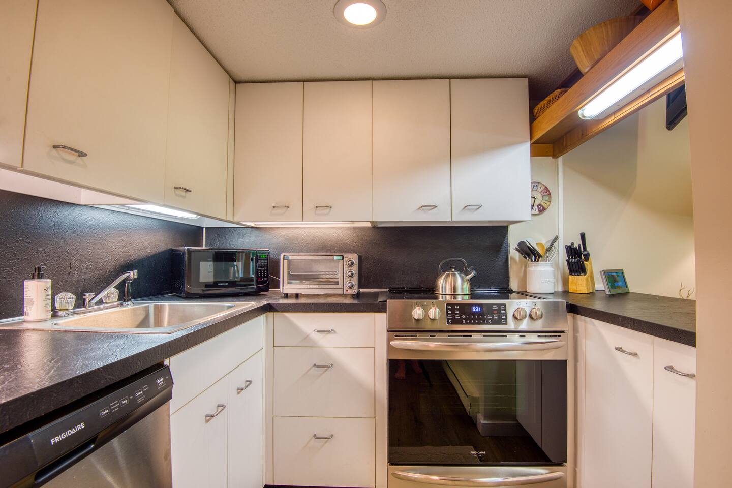 This condo is a 3 bed, 2 bath, multi level condo. It features an open concept on the main floor, outdoor balconies, and beautiful grounds to explore.