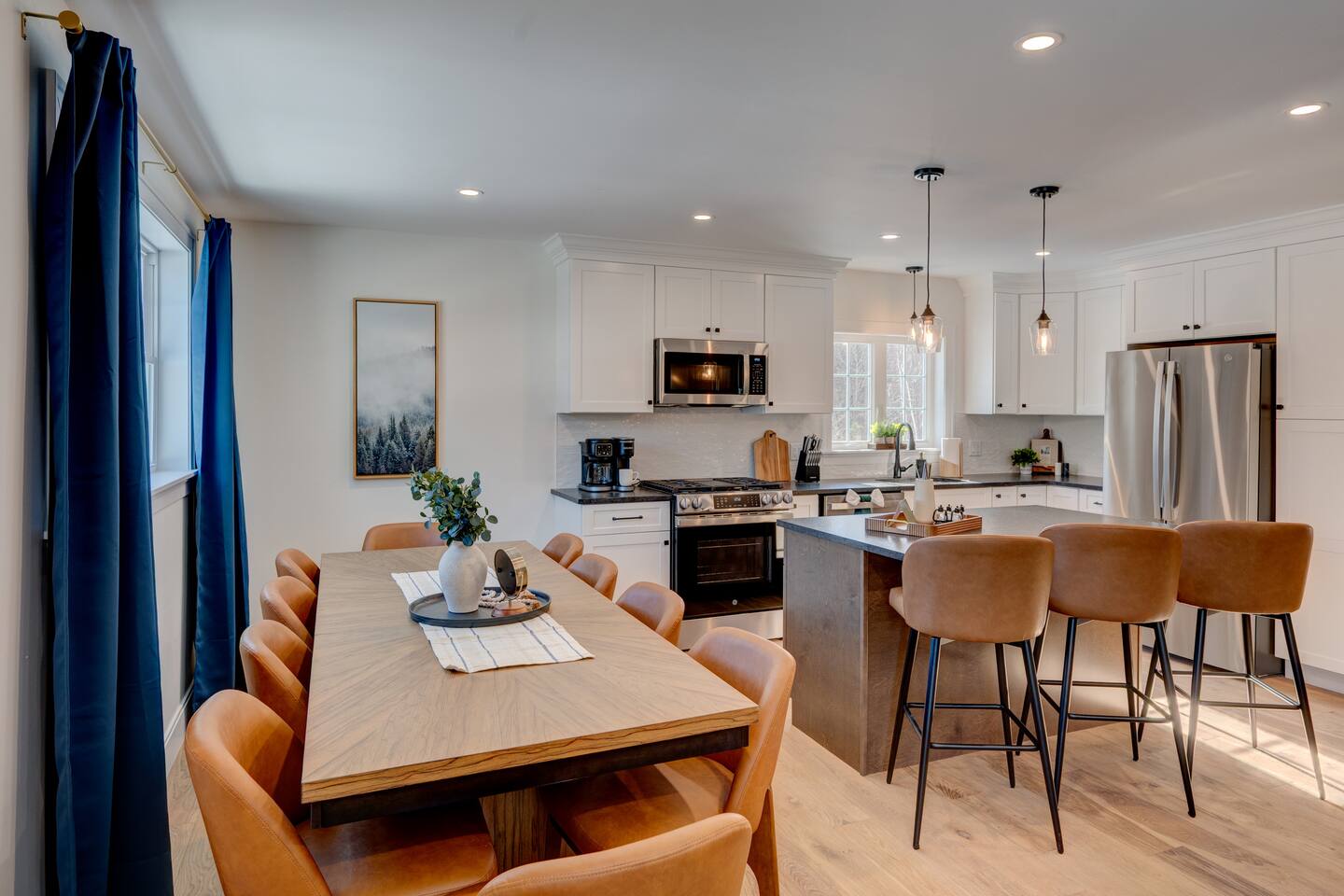 Just minutes from Loon Mountain and downtown Lincoln, Alpine Escape is a brand-new, modern retreat that sleeps 14 and features a private hot tub. This 5-bedroom, 4.5-bath home spans nearly 3,000 square feet with all-new furnishings, thoughtful design, and access to Forest Ridge pools, hot tubs, fitness room, and a seasonal shuttle. Ideal for families and groups, Alpine Escape blends comfort, amenities, and a prime location for four-season White Mountains adventures.