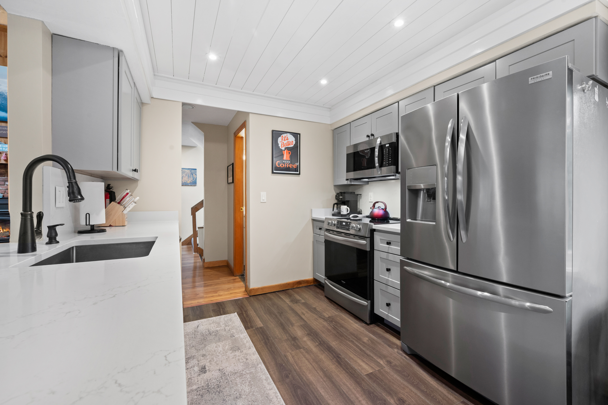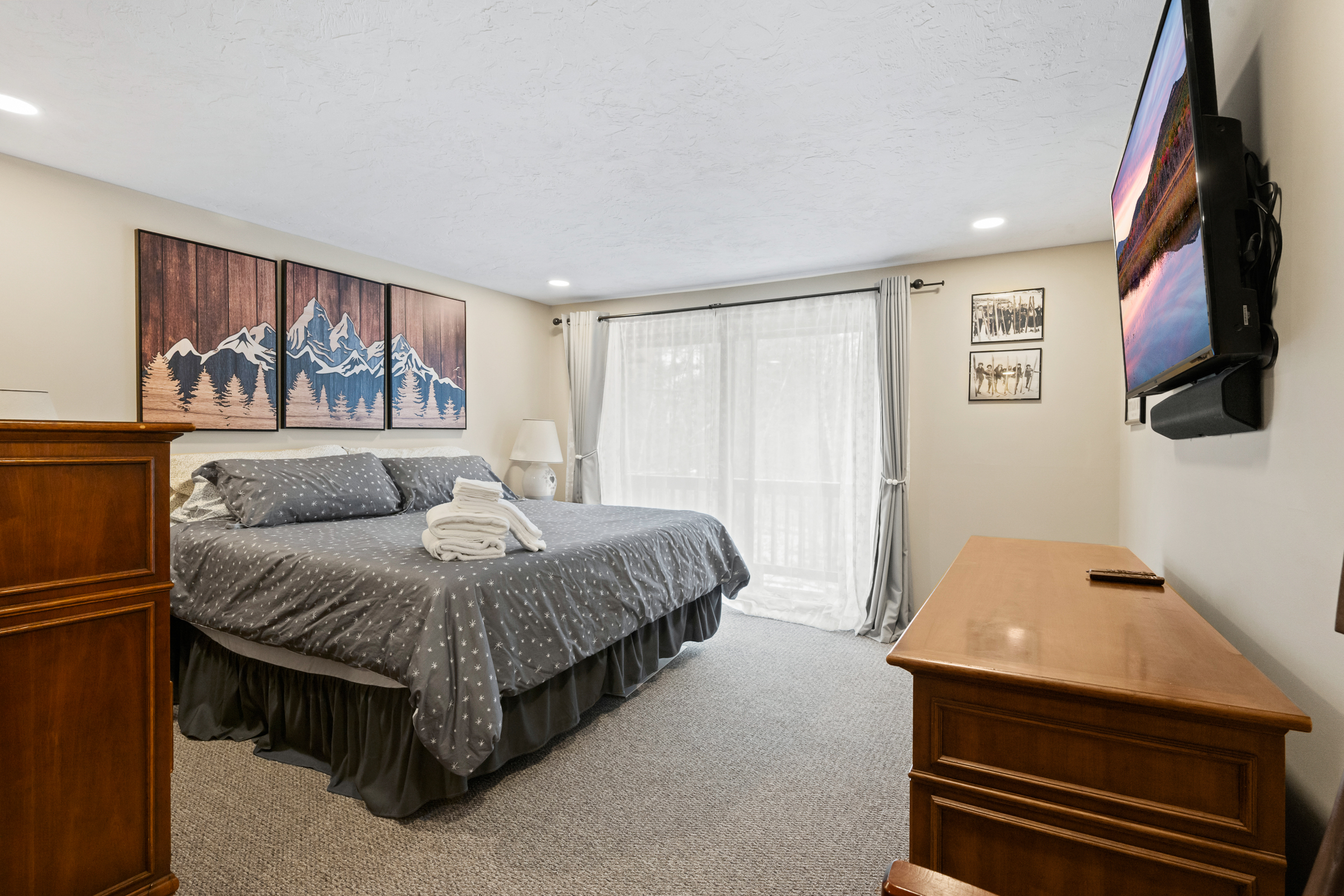 Pineside Hideaway is a renovated, multi-level condo in Bartlett’s Woodland Pines community designed for groups and families who want space, comfort, and a prime location. With three levels of living, including a loft sleeping area, there’s room for everyone to spread out while still enjoying time together. After a day exploring the White Mountains, relax on the private deck or take advantage of the community’s seasonal pool and tennis courts—all set in a quiet wooded setting just minutes from North Conway and the area’s top attractions. Things You’ll Love ✔ Renovated interior with updated finishes and furnishings ✔ Sleeps up to 12 across 3 levels + loft sleeping area ✔ Private deck in a quiet wooded setting ✔ Seasonal outdoor pool (summer) ✔ Community tennis courts ✔ Multiple living spaces for families and groups ✔ Close to skiing, hiking, shopping, and dining Nearby Attractions ✔ North Conway Village – 5 minutes ✔ Attitash Mountain Resort – 5 minutes ✔ Cranmore Mountain Resort – 9 minutes ✔ Settlers Green Outlets – 10 minutes ✔ Story Land – 10 minutes ✔ Black Mountain – 12 minutes ✔ Diana’s Baths – 15 minutes ✔ Wildcat Mountain – 20 minutes ✔ Mount Washington Auto Road – 22 minutes ✔ Santa’s Village – 55 minutes